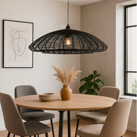 Suspension ALBA BLACK en corde naturelle avec monture électrique E27 80cm diamètre