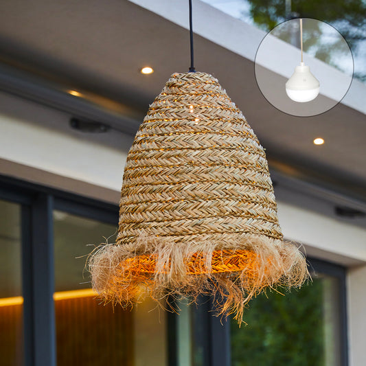 Suspension ANAFI NOMAD en jonc de mer naturel style bohème avec ampoule LED blanc/RGB nomade