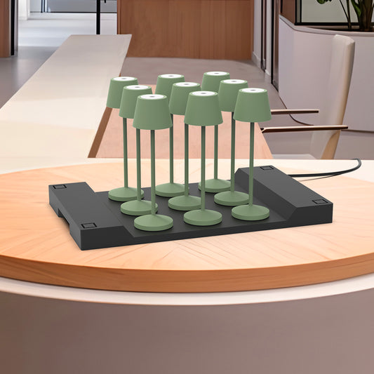 Lot de 9 lampes de table sans fil LED blanc chaud dimmable EMILY OLIVE H25cm avec plateau de chargement