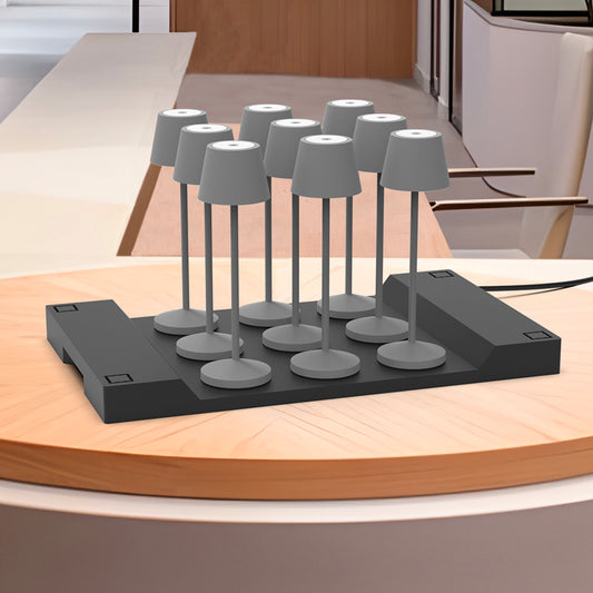 Lot de 9 lampes de table sans fil LED blanc chaud dimmable EMILY GREY H25cm avec plateau de chargement