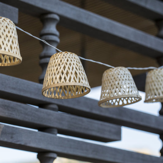 Guirlande lumineuse solaire rotin naturel 10 abat-jour LED blanc chaud CHILL 3.80m