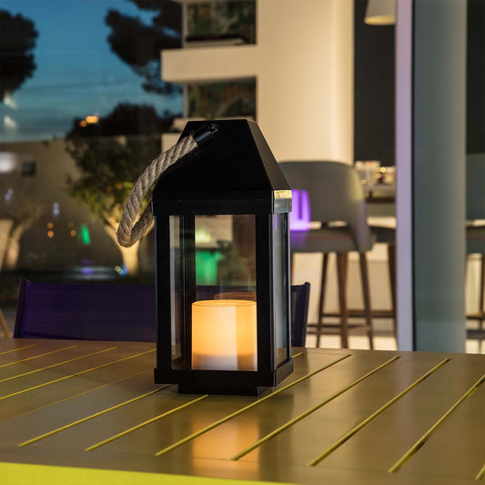 Lanterne photophore solaire décorative poignée en corde effet bougie LED blanc chaud CHANDELY H43cm
