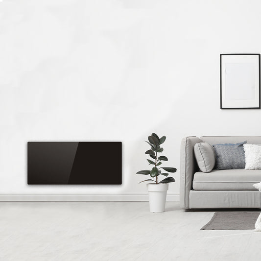 Radiateur électrique noir à inertie sèche bloc CERAMIQUE + facade VERRE écran LCD 1000W GLASS Norme NF