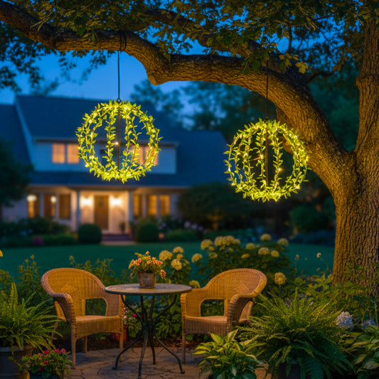 Lot de 2 suspensions solaires boules lumineuses et feuillage avec panneau solaire déporté 2x BALL FESTY D30cm