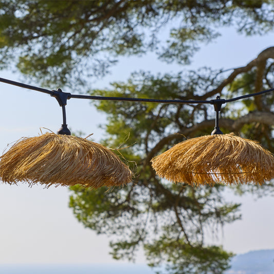 Guirlande lumineuse extérieure raccordable 35.4m avec 56 ampoules LED filament E27 blanc chaud TAHITI LIGHT Abat-jour en paille bohème