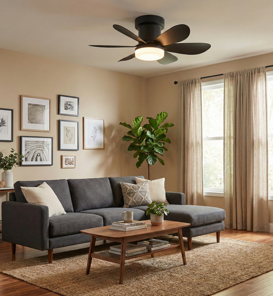 Ventilateur de Plafond 52cm avec Lampe LED MISTRAL Petit Ventilateur Silencieux Chambre Enfant Bureau Cuisine Moteur DC Basse Consommation Réversible Ete Hiver avec Telecommande Noir