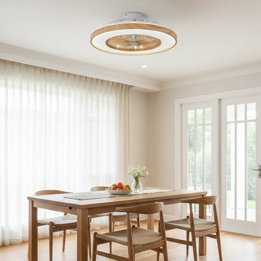 Ventilateur de Plafond 52cm avec Lampe LED MISTRAL Petit Ventilateur Silencieux Chambre Enfant Bureau Cuisine Moteur DC Basse Consommation Réversible Ete Hiver avec Télécommande Couleur bois