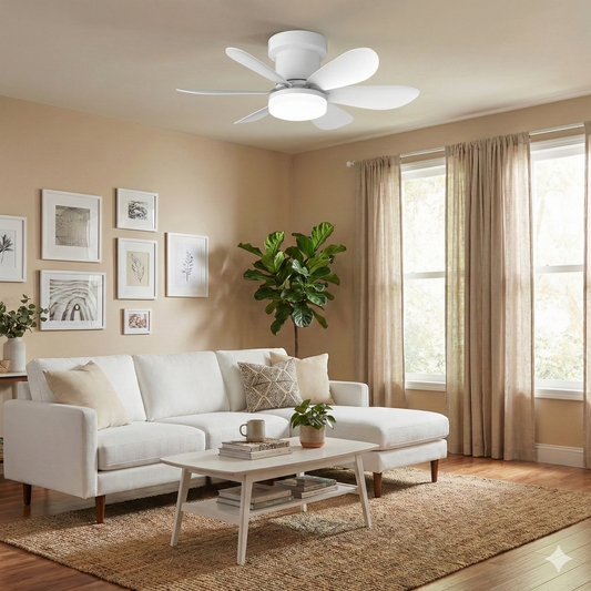Ventilateur de Plafond 52cm avec Lampe LED MISTRAL Petit Ventilateur Silencieux Chambre Enfant Bureau Cuisine Moteur DC Basse Consommation Réversible Ete Hiver avec Télécommande Blanc