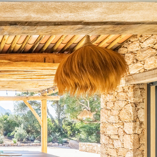 Abat jour naturel MASAI en herbe de rayung style bohème H40cm pour monture électrique E27