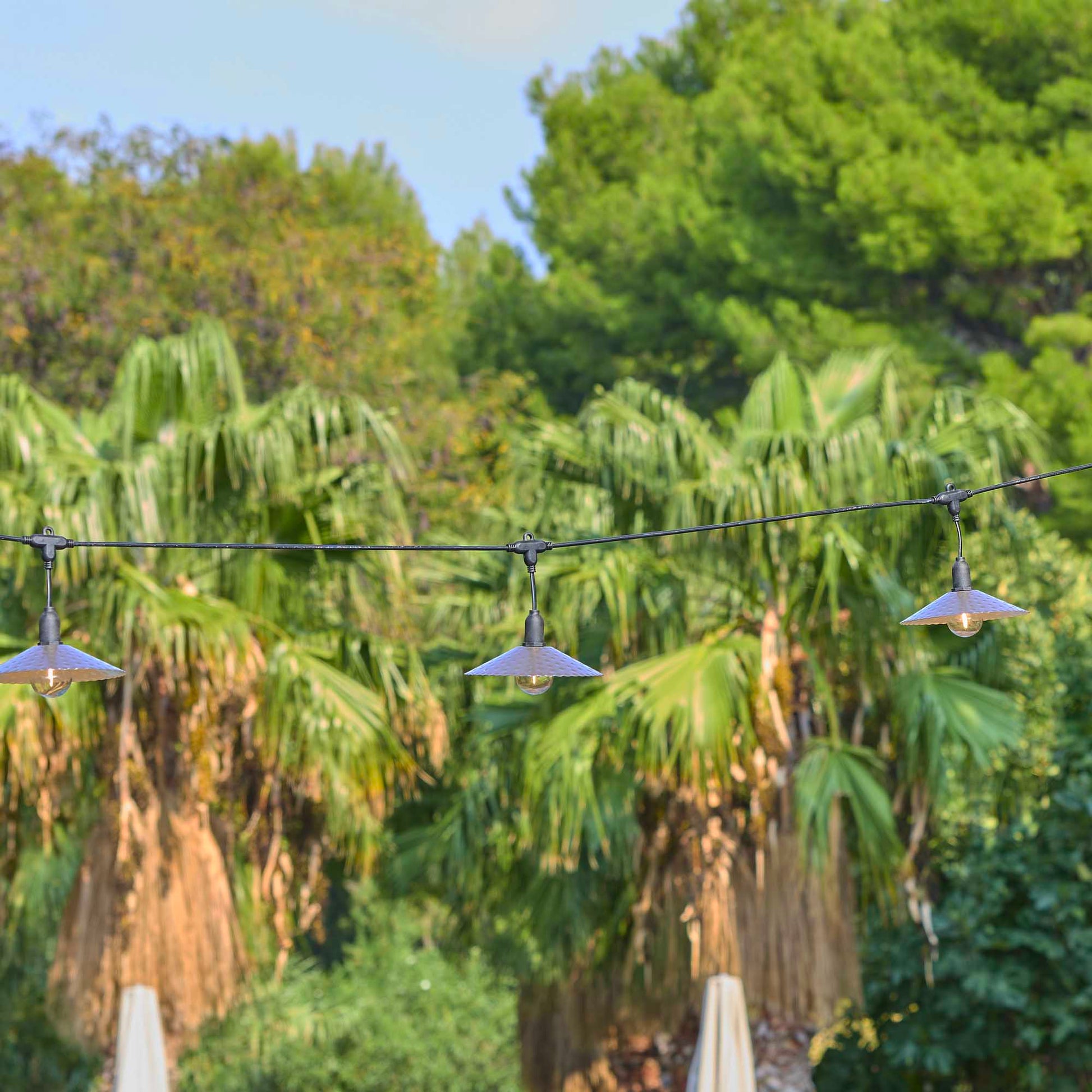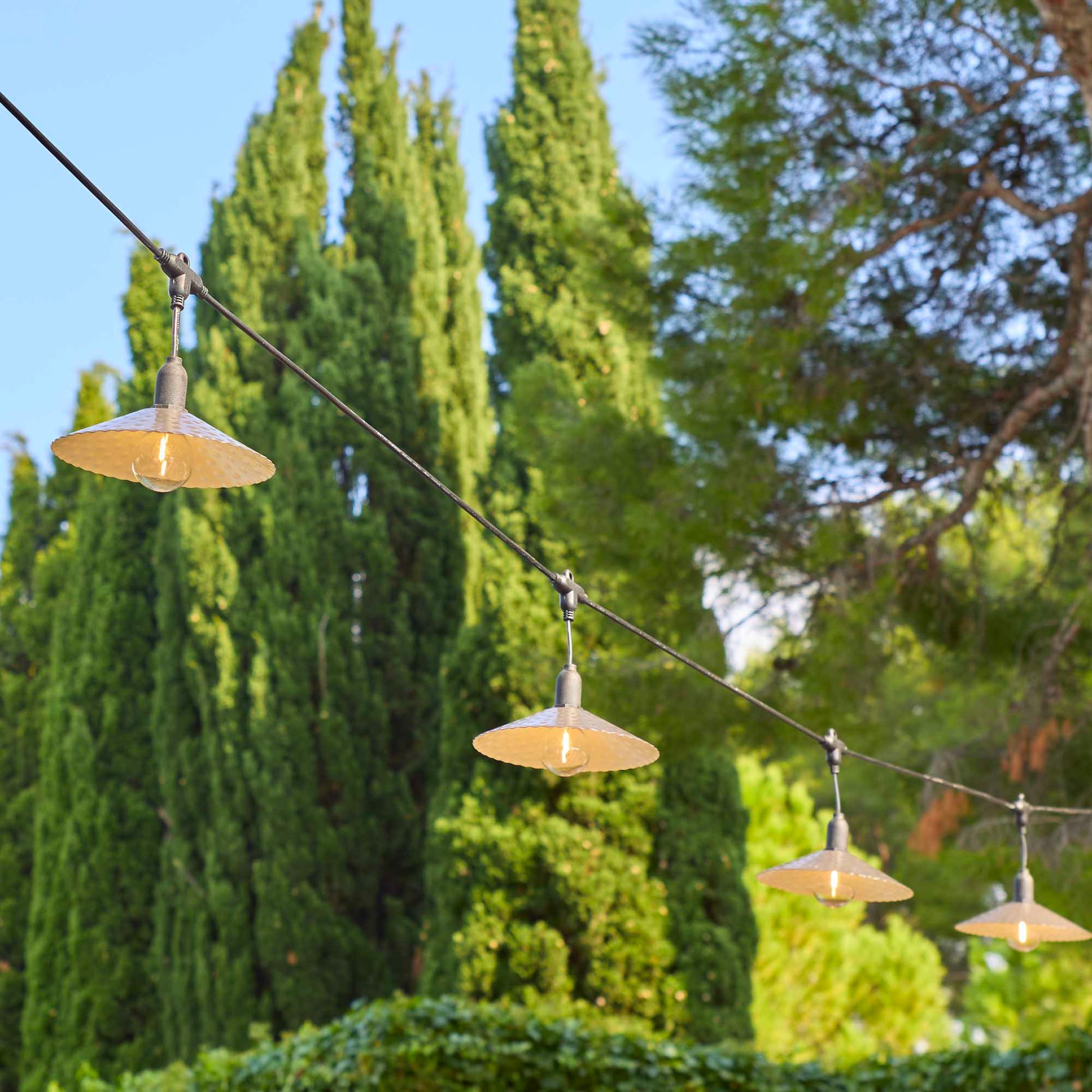 Guirlande lumineuse extérieur 10 abat-jour en acier style vintage MINI VINTY LIGHT HYBRID LED blanc chaud 6m solaire et sur secteur