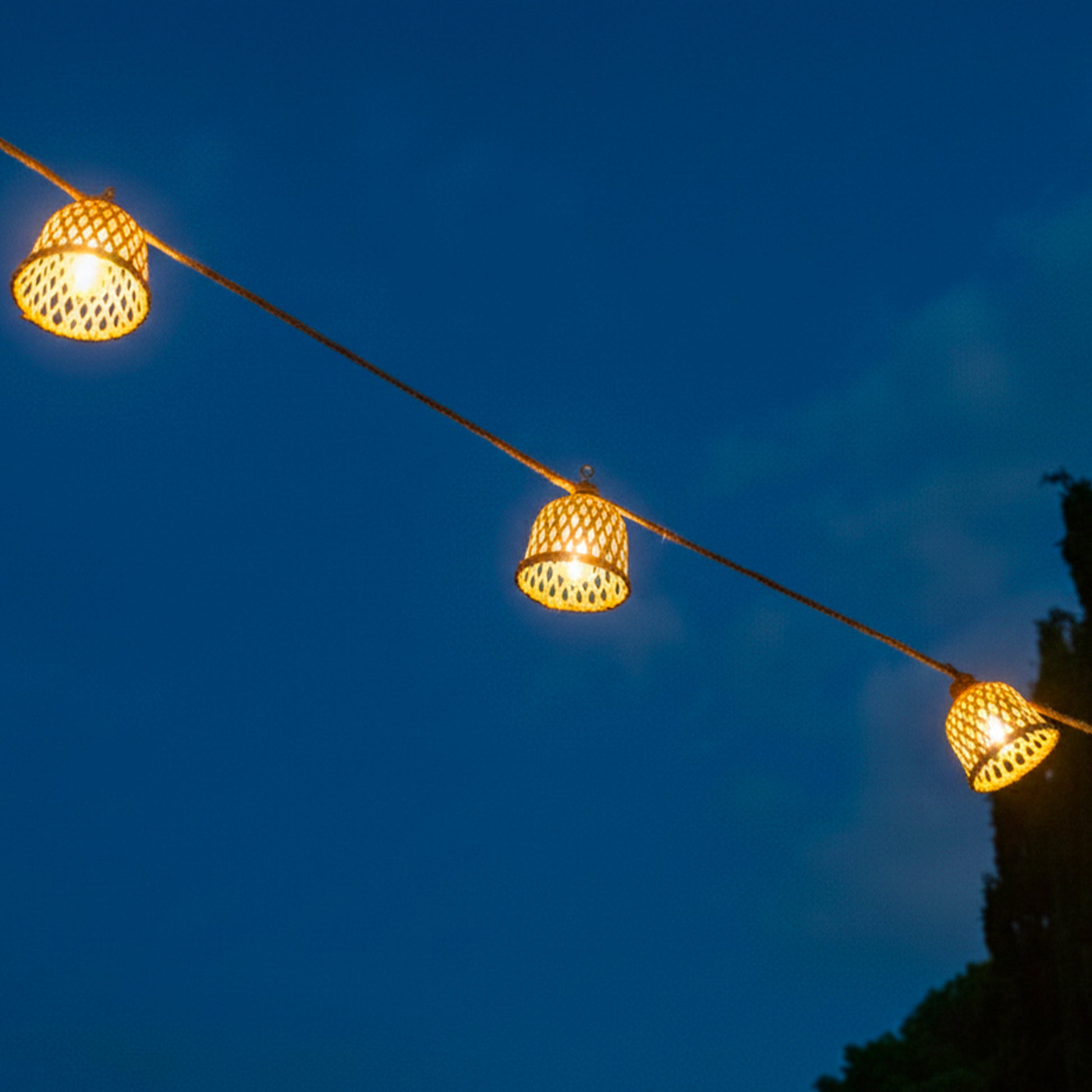 - Guirlande LED Hybride : Dotée de 10 abat-jour en rotin naturel, la guirlande Maly Light Hybrid crée une atmosphère exotique et conviviale en extérieur. Son éclairage blanc chaud, à la fois doux et festif, réussit à marier avec élégance la simplicité et l'esprit festif. Elle s'harmonisera avec tous les types de terrasses, offrant un éclairage apaisant pour rendre vos soirées en extérieur encore plus agréables.