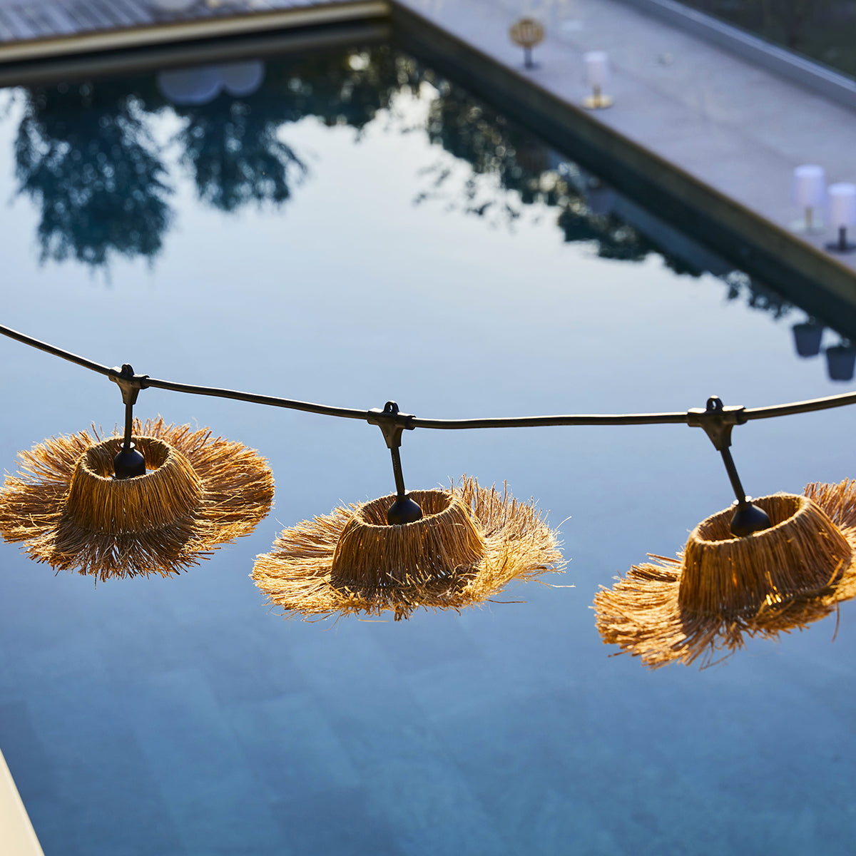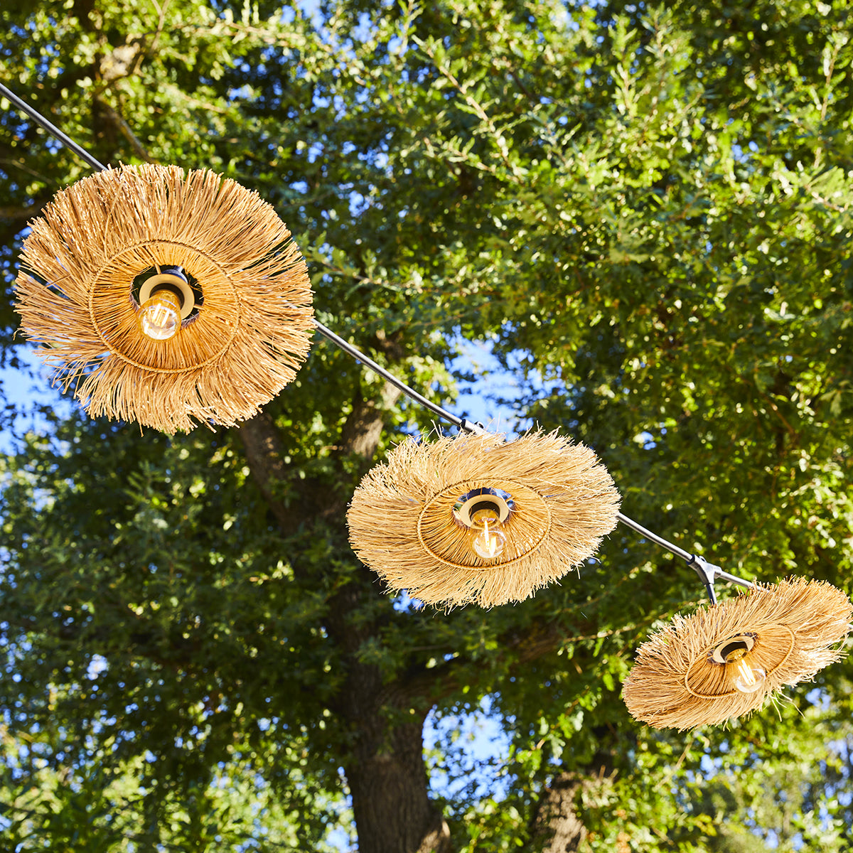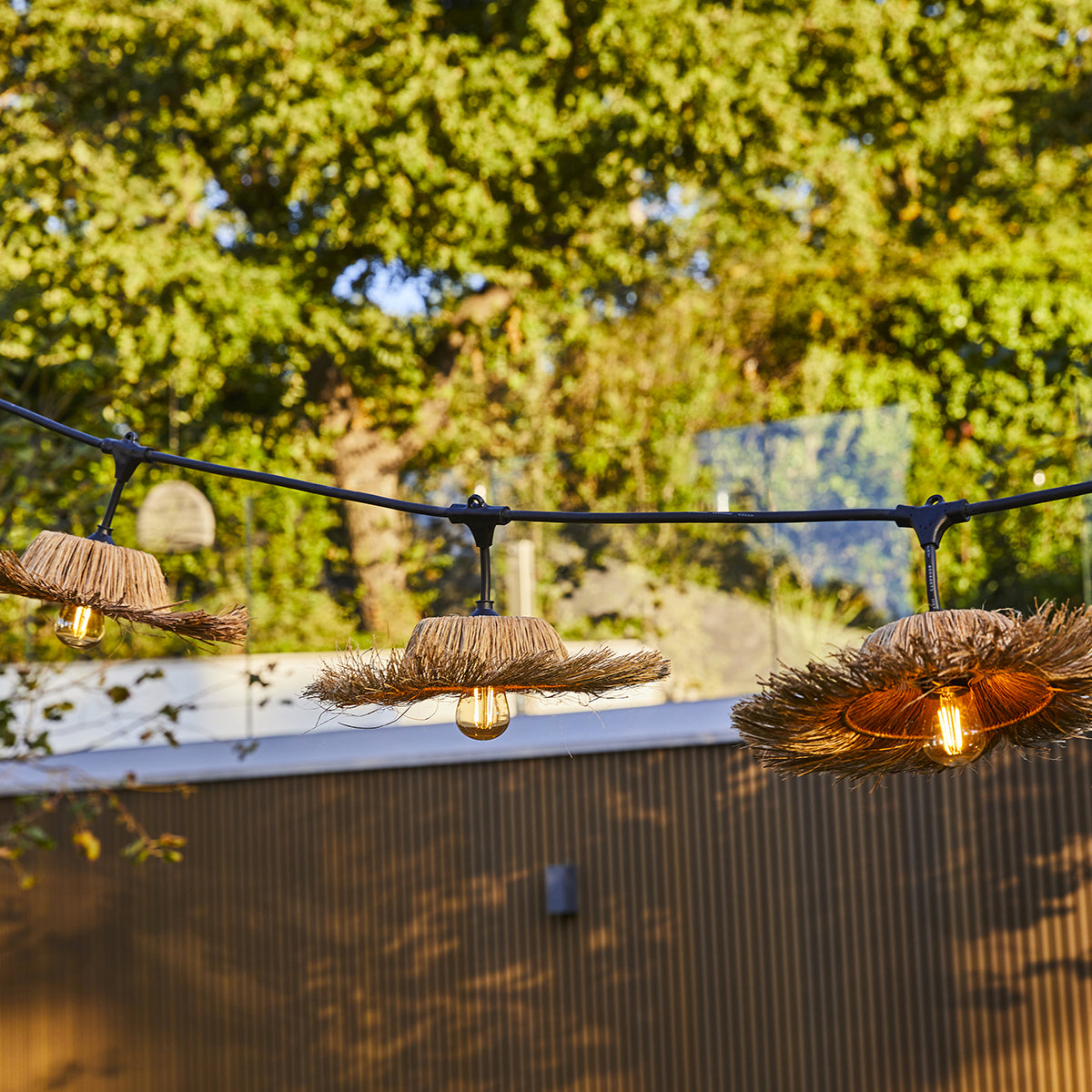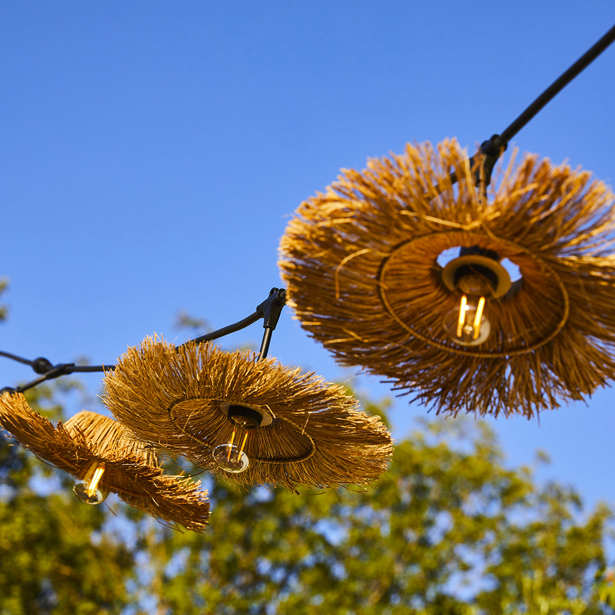 Guirlande lumineuse extérieure raccordable 64.8m avec 105 ampoules LED filament E27 blanc chaud TAHITI LIGHT Abat-jour en paille bohème