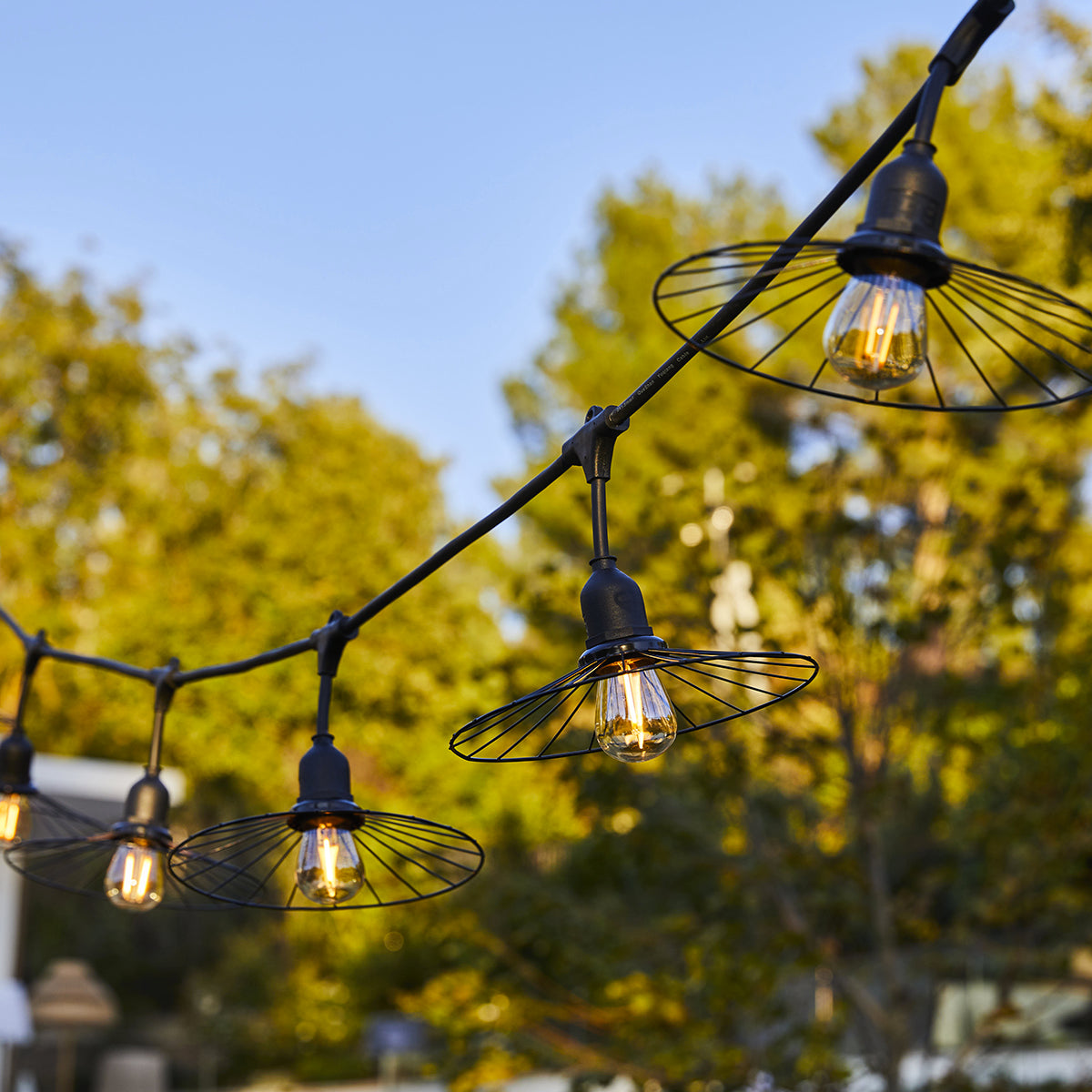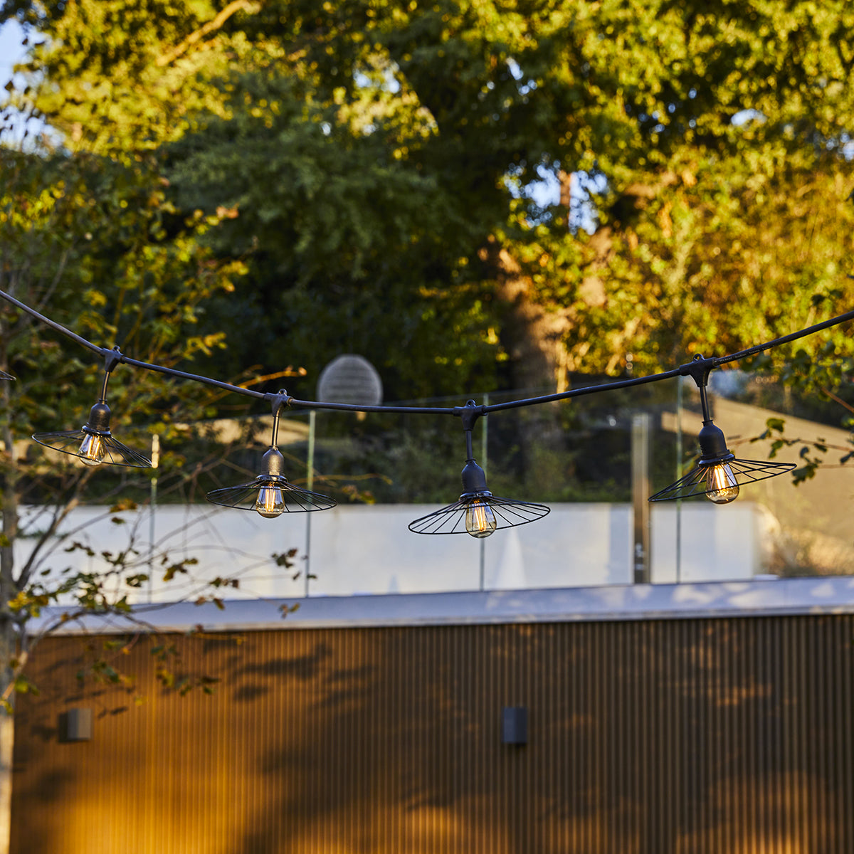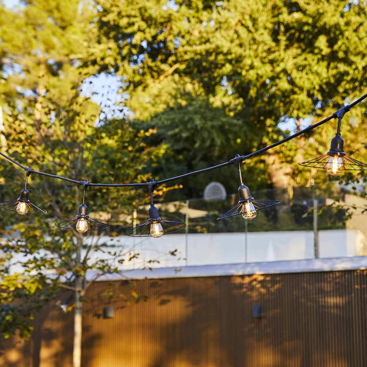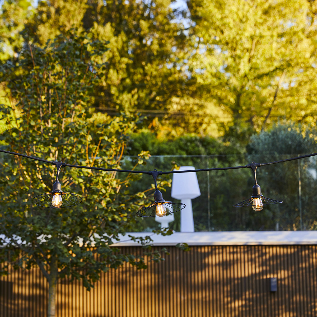 Guirlande lumineuse raccordable d'extérieur avec abat-jour en métal filaire 10 ampoules à filament douille E27 LED blanc chaud CHIC CAGE LIGHT CONNECTABLE 6m