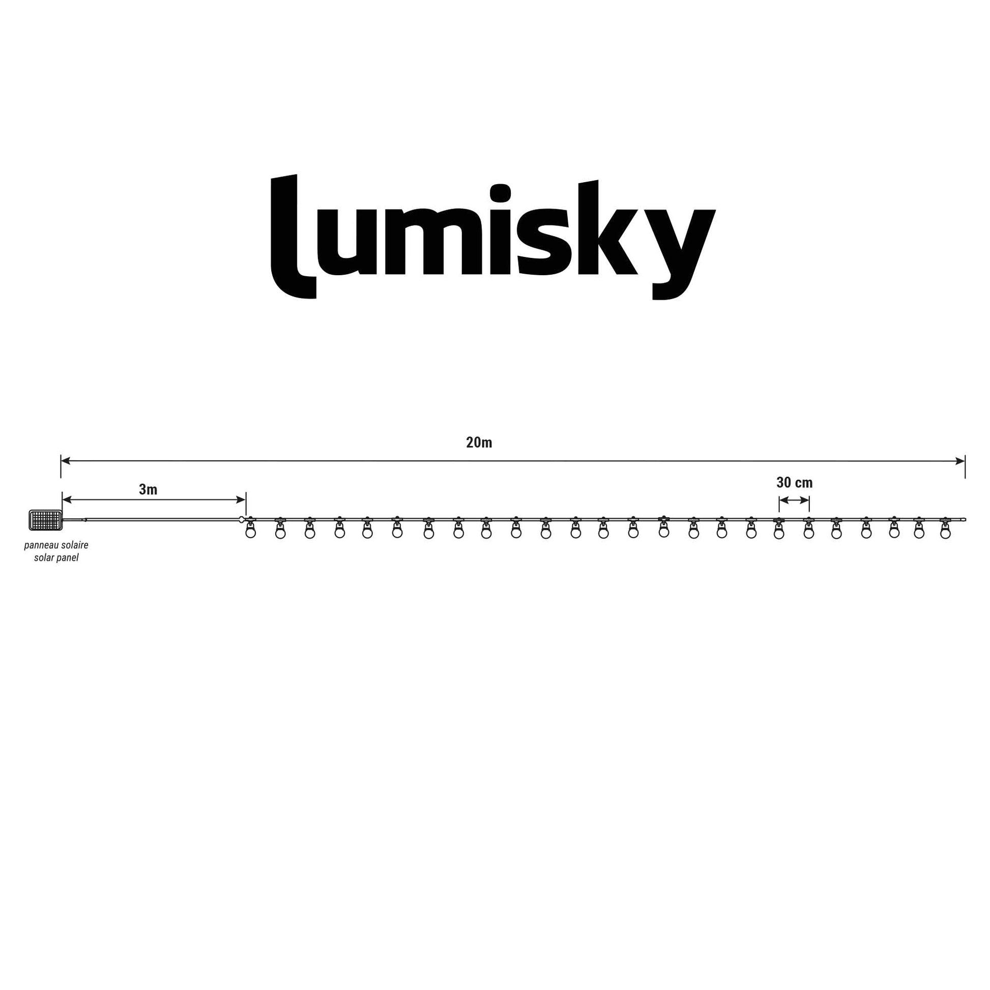 Guirlande lumineuse solaire 25 ampoules bulles BUBBLE STRING LIGHT LED blanc chaud dimmable 20m