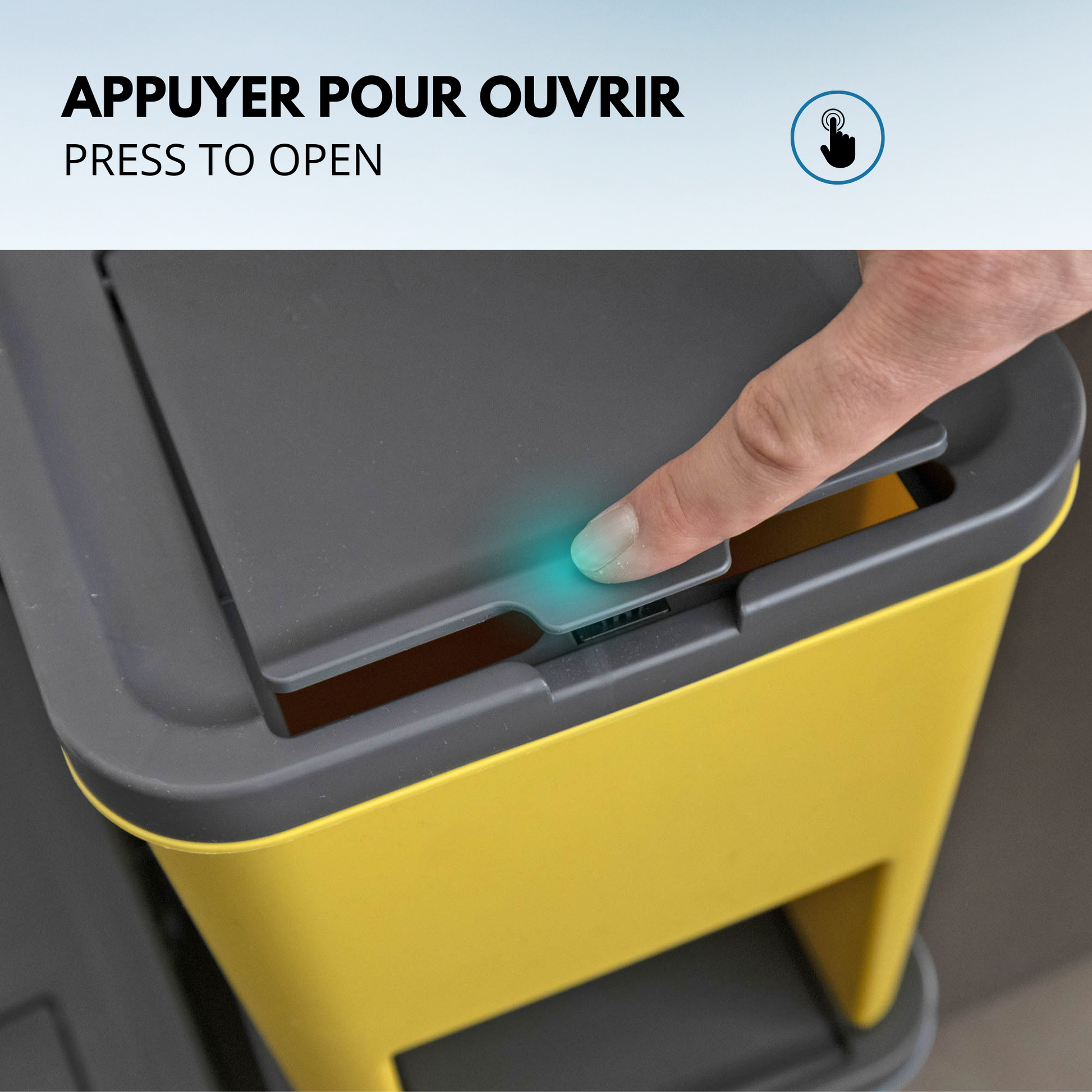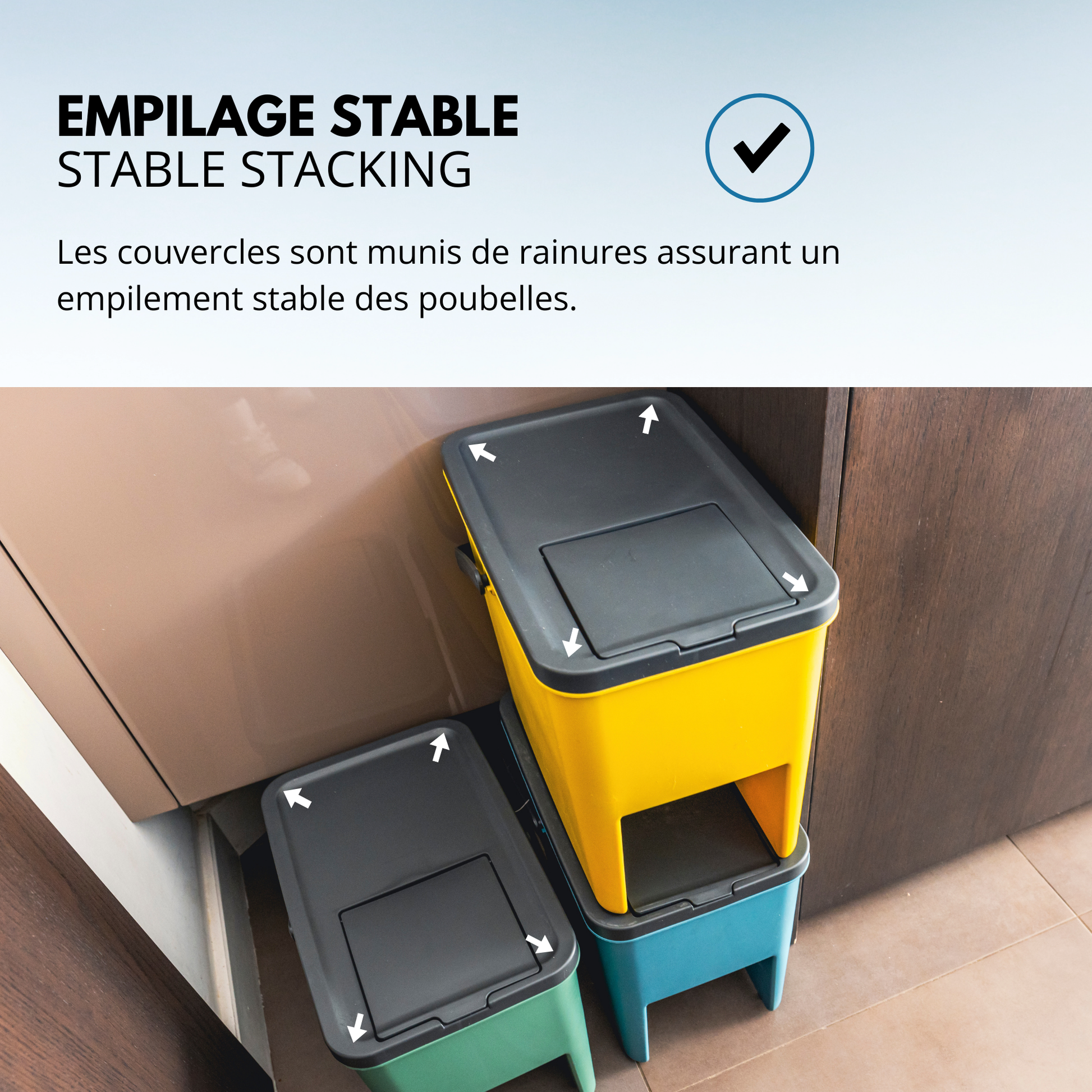 Lot de 3 Poubelles Empilables 20L pour Recyclage BERGEN Poubelles de Tri Sélectif en Plastique, Couleurs Jaune, Bleu, Vert et Gris