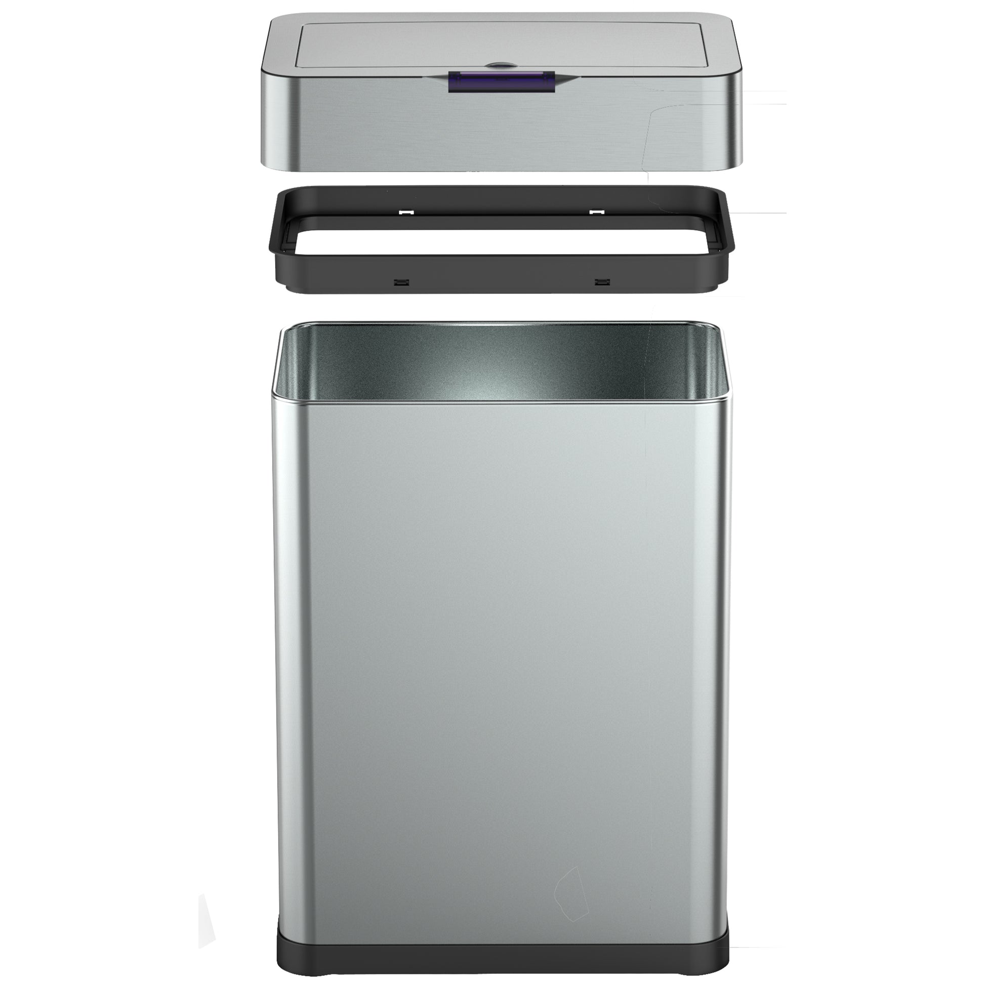- Ses matériaux lisses (fer non-corrosif INOX fin et ABS) facilitent son entretien.Plus qu'une poubelle, un meuble design. Il n'est pas utile de se baisser pour jeter ses déchets. Poubelle Stable. Base antidérapante. Fermeture silencieuse et Anti-Traces de Doigts. Fermeture anti-odeurs.