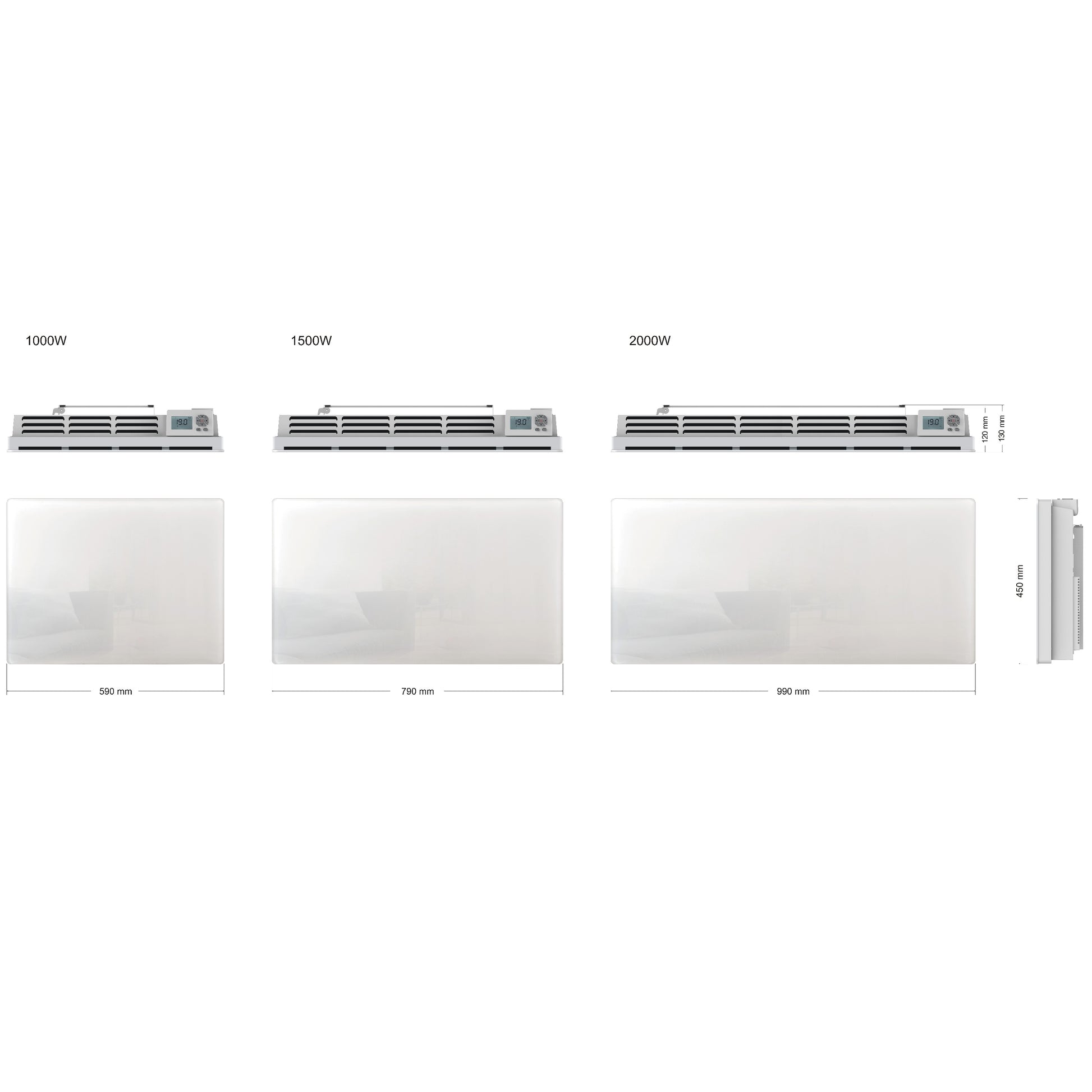 Radiateur électrique à inertie sèche bloc CERAMIQUE + facade VERRE écran LCD 2000W GLASS Norme NF