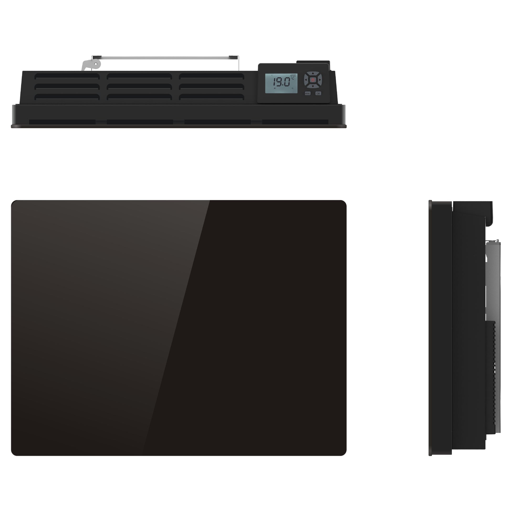 Radiateur électrique noir à inertie sèche bloc CERAMIQUE + facade VERRE écran LCD 2000W GLASS Norme NF